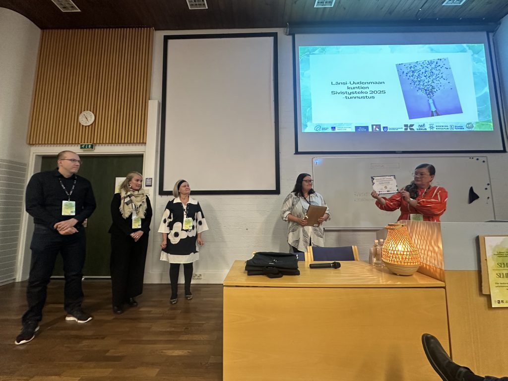Länsi-Uudenmaan kuntien kasvatuksen ja opetuksen johdon seminaarissa 2.10. myönnettiin ensimmäistä kertaa tunnustus vuoden sivistysteosta.
