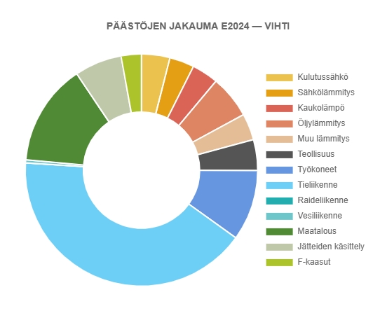 Vuonna 2024, kolme suurinta päästösektoria kunnassa olivat (SYKE – Kuntien ja alueiden kasvihuonekaasupäästöt, 2025)