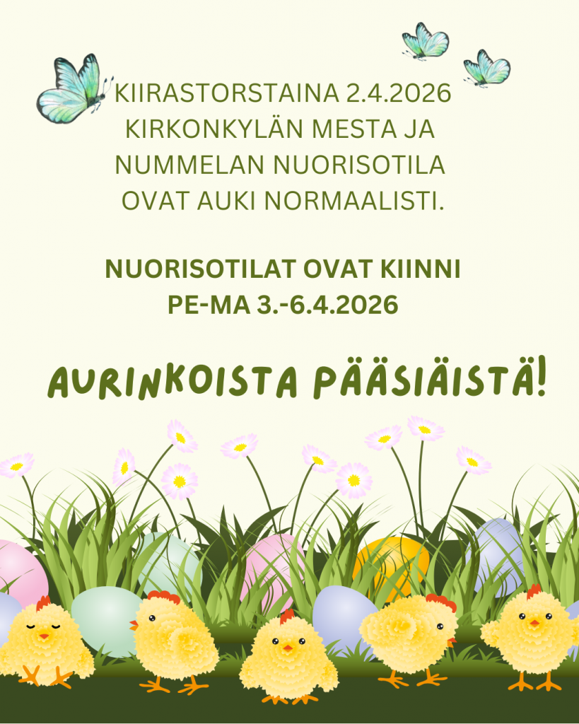 🐥Nuorisotilat ovat kiinni pe-ma 3.-6.4.2026.