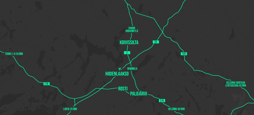 Sijaintimme valtateiden VT1, VT2 ja VT25 risteysalueella takaa sujuvat yhteydet niin pääkaupunkiseudulle kuin muualle Suomeen. Alle tunnin ajomatkan sisällä tavoitat yli 1,5 miljoonan suomalaisen markkina-alueen – täällä yrityksesi on lähellä asiakkaita, yhteistyökumppaneita ja työvoimaa.