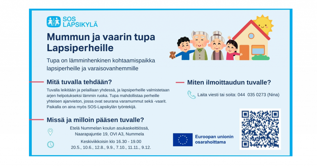 SOS-lapsikylä tarjoaa Vihdin alueella lapsiperheille lämminhenkistä kohtaamispaikkatoimintaa sekä Perhekumppani -palvelua.